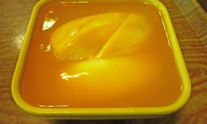 マンゴーの大きな果肉が3つのっていて、マンゴーのソースもたっぷり。なんともゼイタクな豆腐花です。